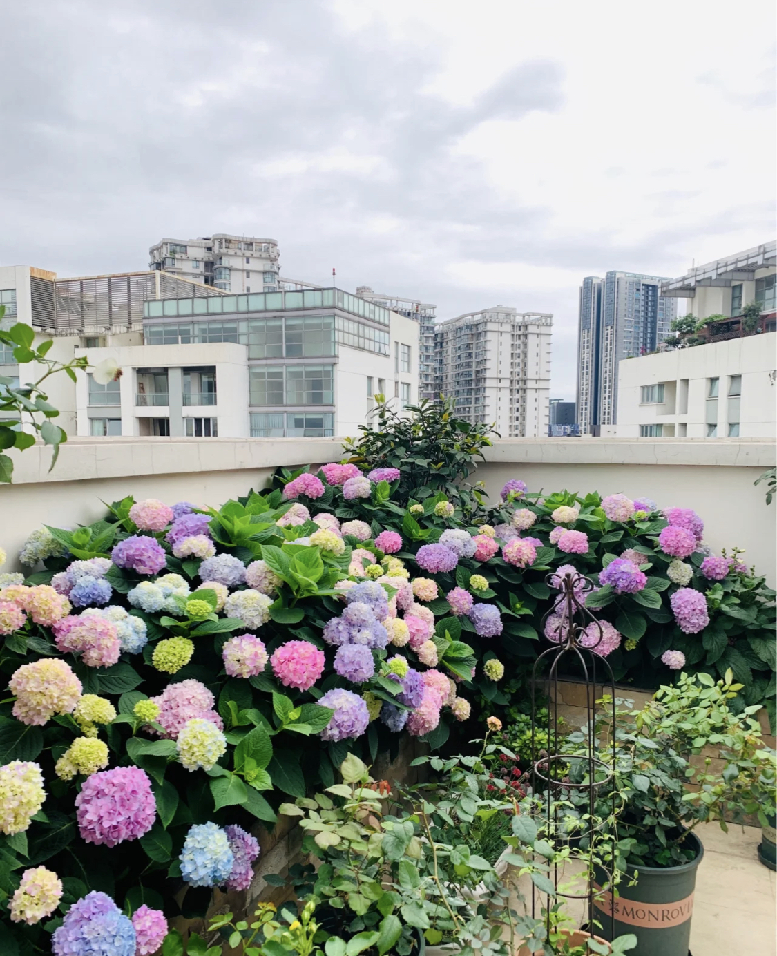 这里小花比较推荐的有月季、绣球花以及球兰等一些生活中非常常见的花卉。对于那些具有攀爬属性的植物,大家还可以根据情况搭建一些高度适中的“花架”,一旦植株进入花期,它们便会顺利攀爬在架子上肆意的生长,美观度爆棚。