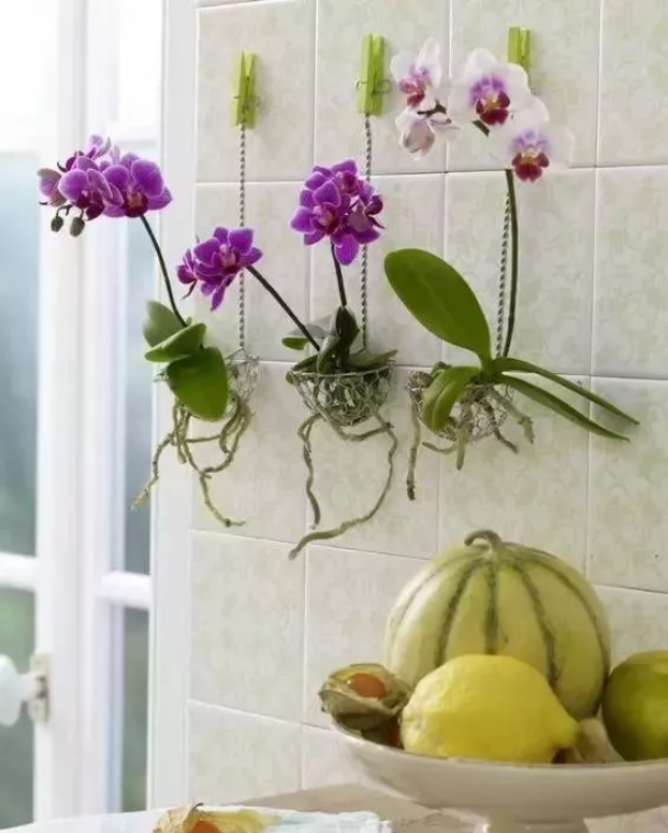 第二种给大家推荐的就是兰花,有一些兰花是不需要花盆的,它暴露在空气当中也能够长得很好,比如一些蝴蝶兰,仅仅只需要用小篮子将它固定住就可以了。这些蝴蝶兰不仅花开得好看,它们的根系也别有一番的美感。