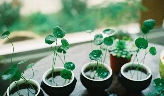 第三种给大家推荐的就是铜钱草,铜钱草的叶子圆圆的,很像铜钱,看着非常的讨喜。铜钱草本身非常喜欢水,如果你将它养在花盆当中,你需要每天都给它浇水,但是如果你将它养在水培瓶里面,那你可以不怎么管它,每天让它自己吸取水瓶里面的水就足够了。