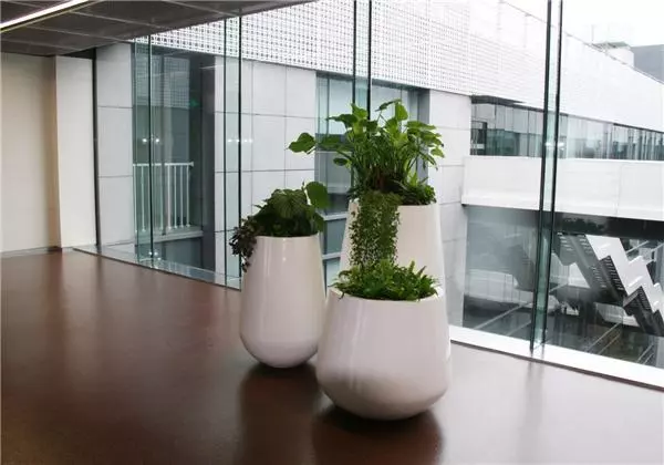 另外在前台左右角落位置摆放一棵大型植物如发财树、绿萝等,除了可以修饰前台角落位置的空旷外,整个还能使前台位置绿意葱葱,使来访的宾客进到办公室感觉企业比较有生气。