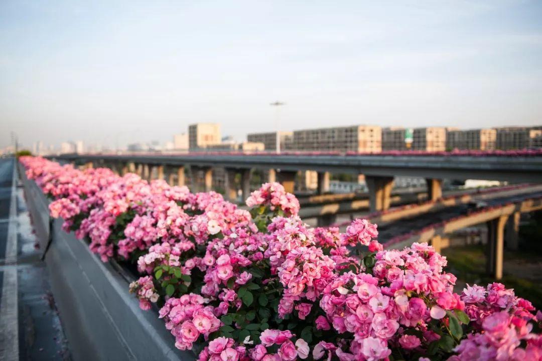 杭州的高架上,粗略数数有40多万棵月季,要是放到整座城市来说,有140多万棵呢。这个数字,在南方城市里来说,杭州算是月季最多的城市了。