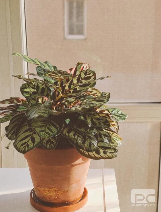 七彩竹芋自身叶片比较短,对光照的需求很小,在阴暗处,也可以正常生长,而且七彩竹芋有一定的抗旱性,并不需要频繁的浇水,每隔1个星期补水—次即可。