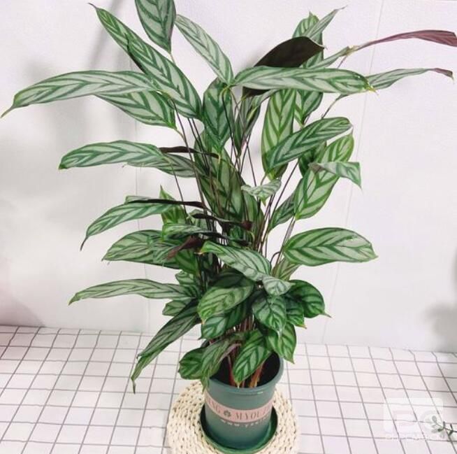 双线竹芋双线竹芋是生活中比较常见的一种竹芋,它的叶子上带有着明显的线条,呈现为白色和暗绿色,十分的美丽,有着一种鲜明的色彩对比之美。平常将其养护在家中,要准备酸性的肥沃土壤,不可接受强光暴晒。