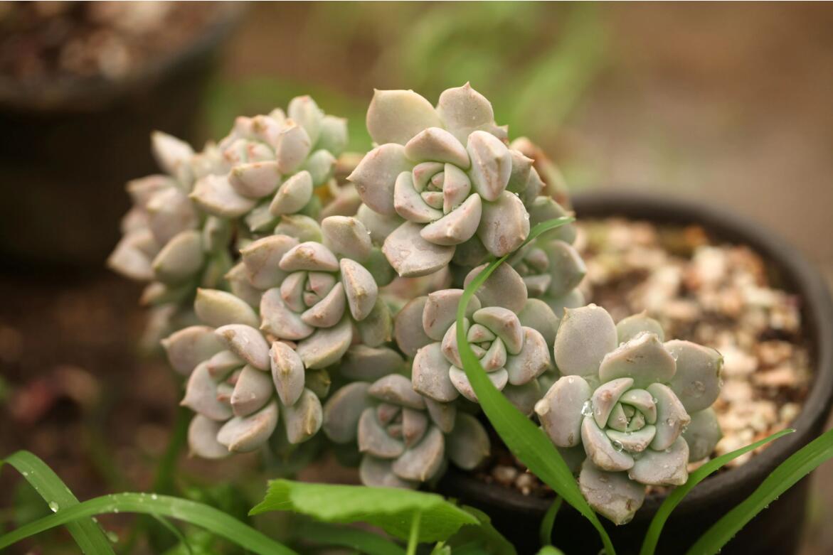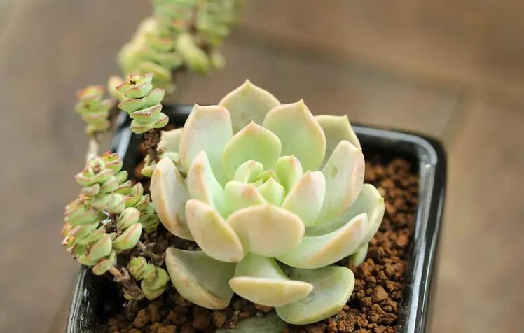 白牡丹,景天科多肉植物,由风车草属的胧月与拟石莲花属 的静夜杂交培育而来。