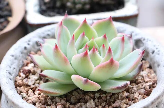 叶尖的红色特别美丽,是一种观赏性很强的多肉植物。