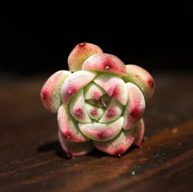 蓝绿至灰绿、淡绿色,并被有浓厚的白粉,日照充足时顶端的小尖呈美丽的玫瑰红或深粉红色。