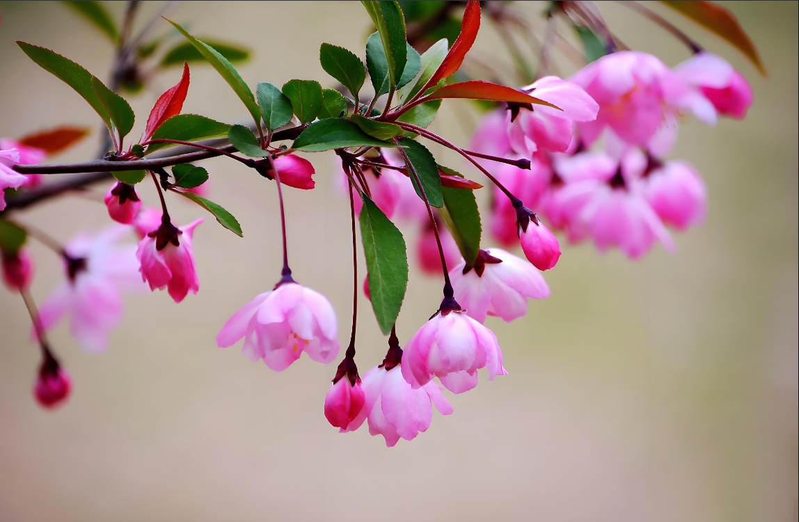 海棠花适宜的生长温度范围较广,一般在15°C至30°C之间。春季和秋季的温和气候最适宜其生长。夏季可以采用遮阳、浇水、叶面喷水等降温措施。冬季的防冻保暖是非常重要的环节,在长江以南地区,在地栽的情况下,一般是能够安全过冬的。