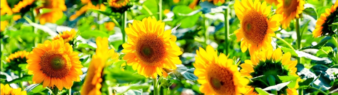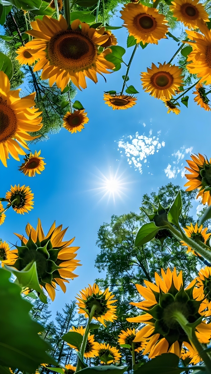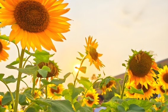 向日葵花盘形似太阳,花色亮丽,纯朴自然,充满生机。一般成片种植,开花时金黄耀眼,极为壮观,深受大家喜爱。