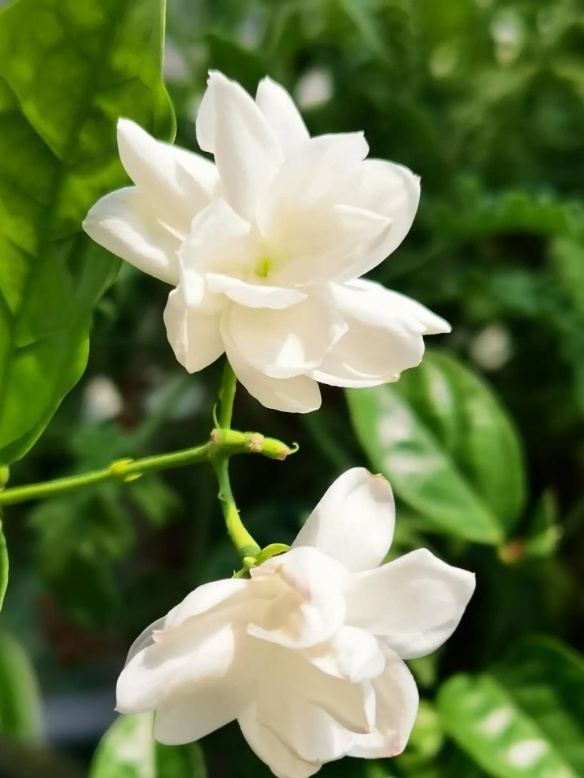 茉莉花,木樨科素馨属直立或攀援灌木植物。高达3米。小枝圆柱形或稍压扁状,有时中空,疏被柔毛。