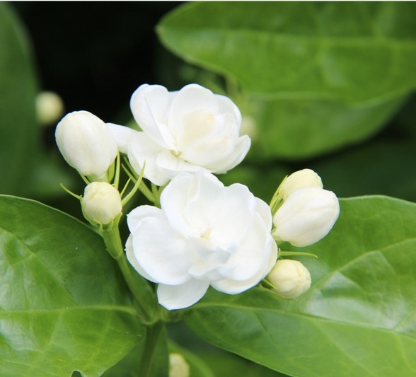 茉莉花“翠叶光如耀,冰葩淡不妆”花朵洁白玉润,香气清婉柔淑,可用于庭院栽培或者摆放赏花。室内栽培:常绿小灌木类的茉莉花叶色翠绿,花色洁白,香味浓厚,为常见庭园及盆栽观赏芳香花卉。多用盆栽,点缀室容,清雅宜人,还可加工成花环等装饰品。而落叶藤本类的大多数黄色的和芬芳的白色花则是国外许多人家花园里用来点缀冬天花园的最好的方式之一。“花开满园,香也香不过它”,它就是“一卉能熏一室香”的茉莉花。茉莉花虽无艳态惊群,但玫瑰之甜郁、梅花之馨香、兰花之幽远、玉兰之清雅,莫不兼而有之。