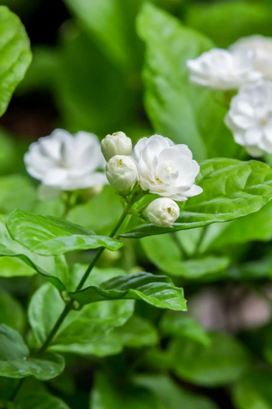 《本草纲目拾遗》记载茉莉花“气香味淡,其气上能透顶,下至小腹,解胸中一切陈腐之气,辟秽浊。”简单来说就是它可以平肝解郁,理气止痛。茉莉花“翠叶光如沃,冰葩淡不妆”花朵洁白玉润,香气清婉柔淑,可用于庭院栽培或者摆放赏花。歌曲《茉莉花》是中国民歌,大多数初来中国的外国人学会的第一首中国歌曲往往也是它,这首歌曲已然成为中国文化走向世界的名片。