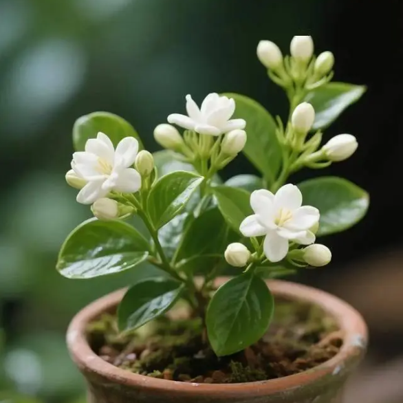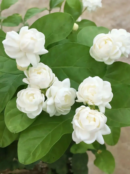 茉莉花的花香浓郁,被誉为“人间第一香”,是茉莉最大的特点之一。在家中摆放几盆茉莉花,花香四溢,满屋飘香,能够提升居家的舒适度和幸福感。茉莉花的花朵洁白无瑕,整体呈现出淡淡的乳白色,加上绿色油亮的枝叶,整体带有清新的气质和典雅的姿态,所以很多花友都喜欢养。