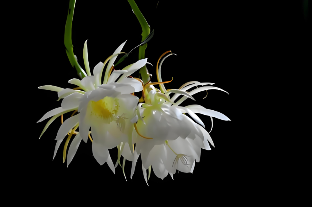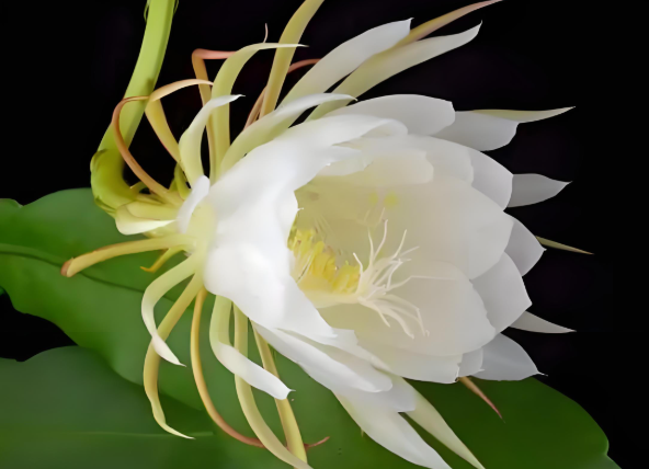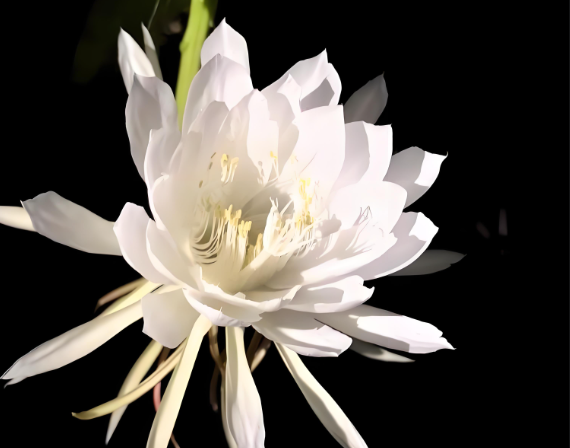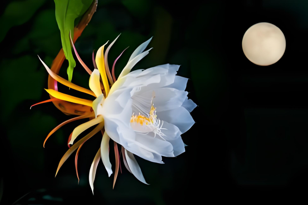 昙花在夜间吸收二氧化碳并释放氧气,与大多数植物日间进行光合作用的习性相反。这使得昙花特别适合室内种植,因为它可以在晚上改善室内空气质量。昙花的香气具有一定的杀菌和抑菌能力,这可以帮助减少家中的细菌和病菌,使得居住环境更为健康。