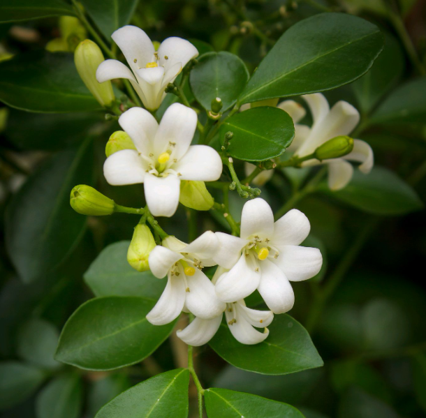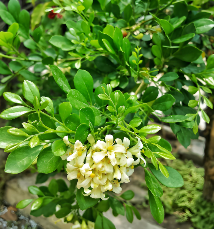 九里香花期为4-8月,也有秋后开花,果期为9-12月。九里香是阳性树种,不耐寒,阳光充足、空气流通的环境,可使其叶茂花繁而香。在半阴处生长不如向阳处健壮,花的香味也淡,过于荫蔽则枝细软、叶色浅、花少或无花。