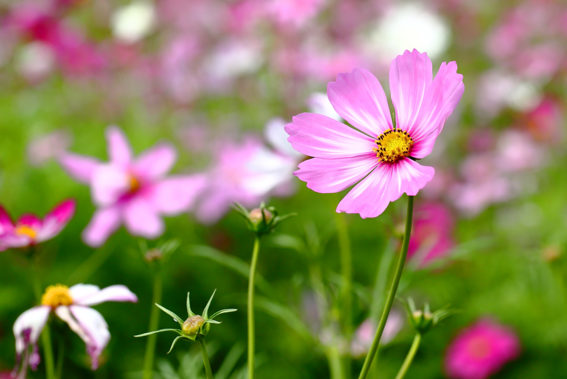 在阴影较多的地方,波斯菊的花朵可能会减少,且植株可能会显得较为瘦长和弱不禁风。