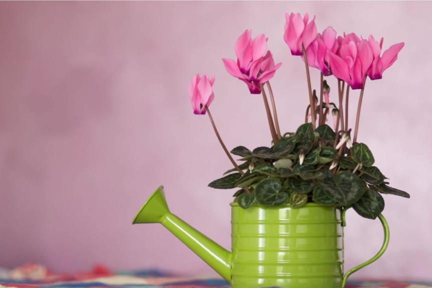 它适宜于盆栽观赏,可置于室内布置,尤其适宜在家庭中点缀于有阳光的几架、书桌上。因其株型美观、别致,花盛色艳,还有具香味的品种,深受人们青睐。仙客来还可用无土栽培的方法进行盆栽,清洁迷人,更适合家庭装饰。